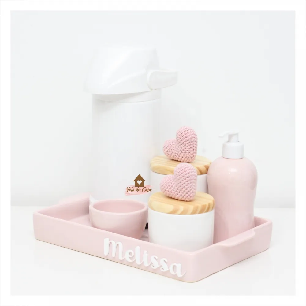 Kit Higiene - Corações - 6 peças - Bandeja Cerâmica