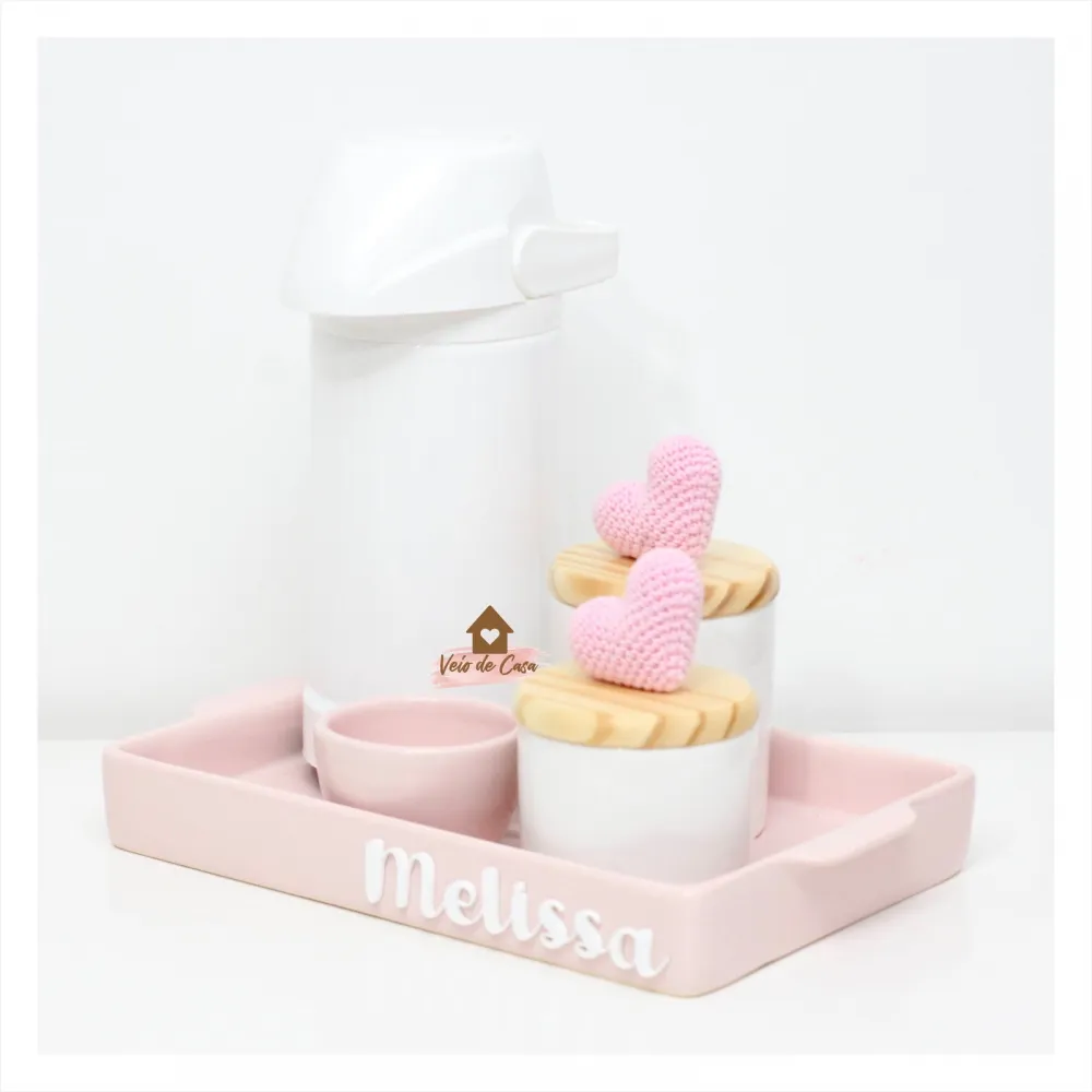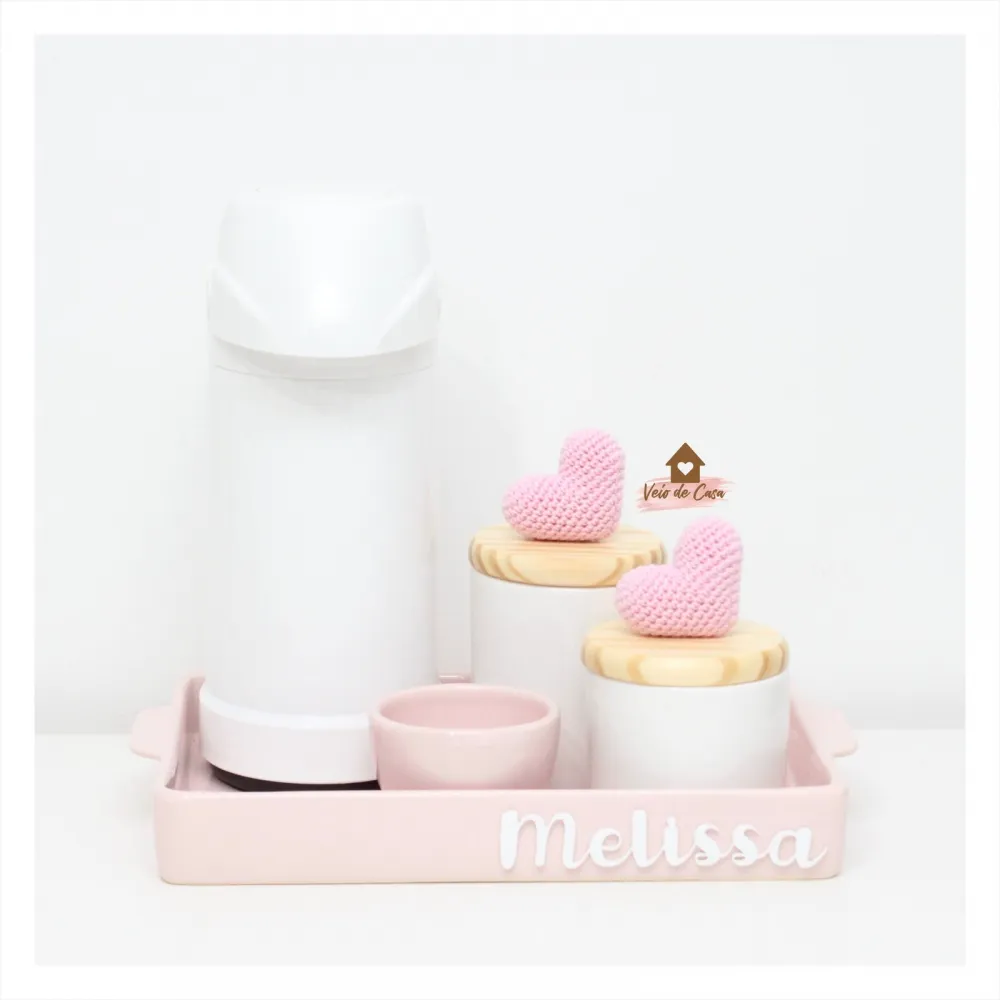 Corações - Kit Higiene - 5 peças - Bandeja Retangular Cerâmica
