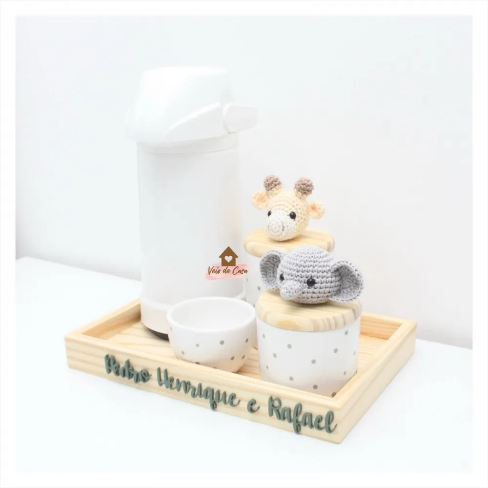 Kit Higiene - 5 peças - Poá - Safari - Girafa e Elefante - Garrafa G