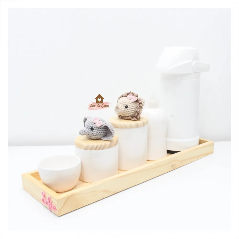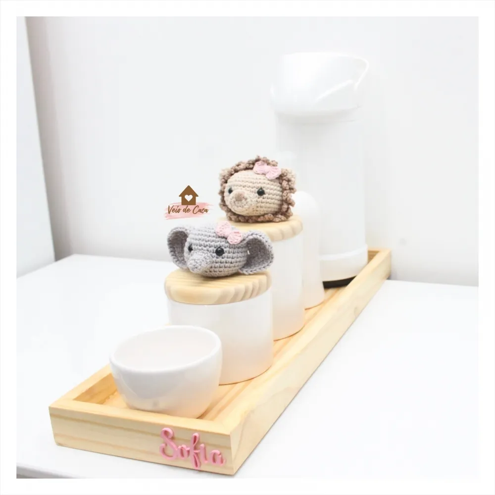 Kit Higiene - 5 peças - Poá - Safari Menina - Leoa + Elefantinha - Garrafa G