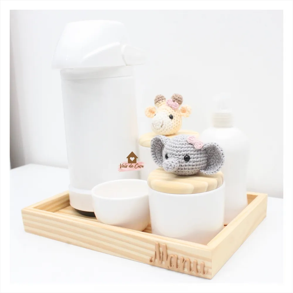 Kit Higiene - 6 peças - Safari Menina - Girafa + Elefante