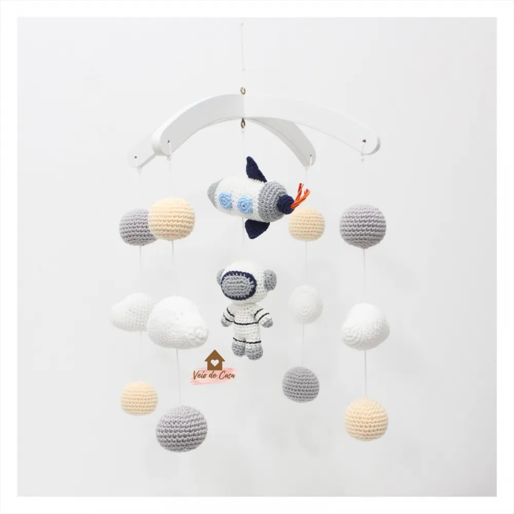Móbile Astronauta - Foguete + Nuvens + Bolinhas