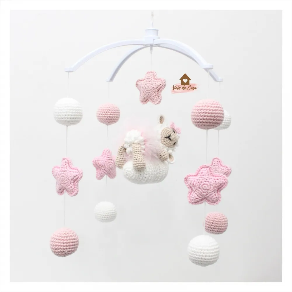 Móbile Ovelha dormindo - Estrelas + Bolinhas