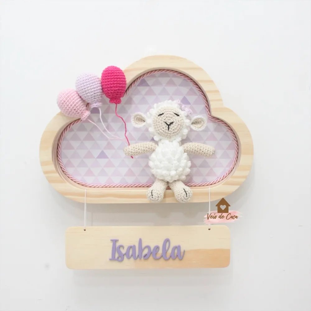 Ovelha Menina - 3 balões - Nuvem P - Porta Maternidade Imagem