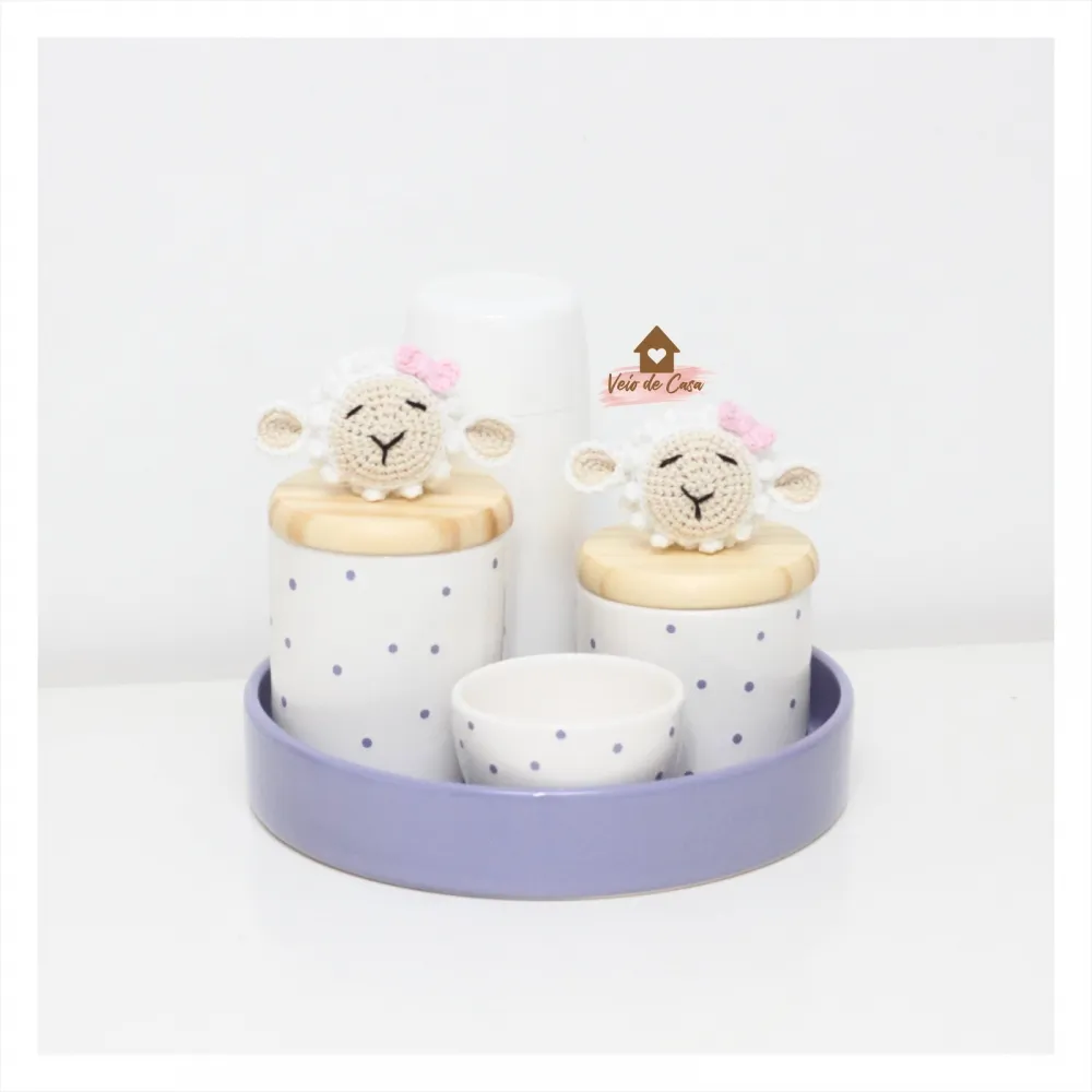 Ovelhas - Menina - Kit Higiene Poá - 5 peças - Bandeja Redonda