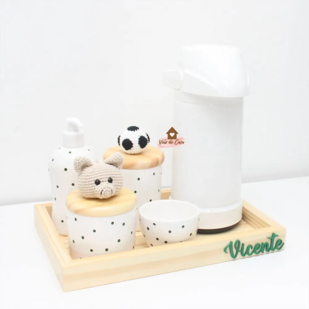 Porquinho Futebol - Kit Higiene - 6 peças - Poá - Garrafa G